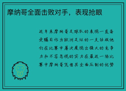 摩纳哥全面击败对手,表现抢眼