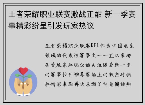 王者荣耀职业联赛激战正酣 新一季赛事精彩纷呈引发玩家热议
