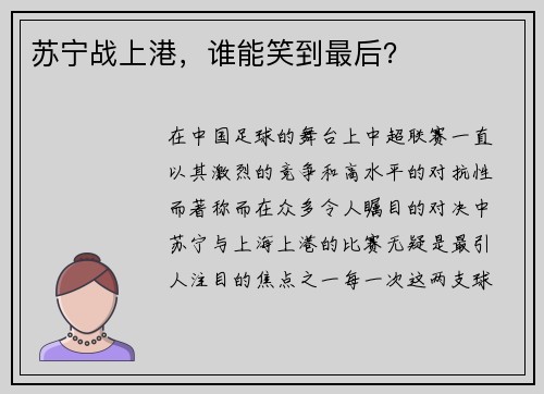 在中国足球的舞台上,中超联赛一直以其激烈的竞争和高水平的对抗性而著称,而在众多令人瞩目的对决中,苏宁与上海上港的比赛无疑是最引人注目的焦点之一。每一次这两支球队碰面,都意味着一场激烈的较量,一场关乎荣誉与未来走势的战斗。